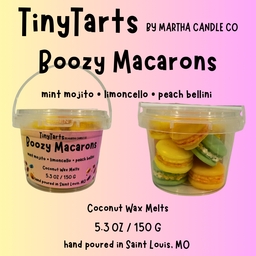 Assortment of mint mojito, peach bellini and limoncello scented macarons. (5.3 oz / 150 g)